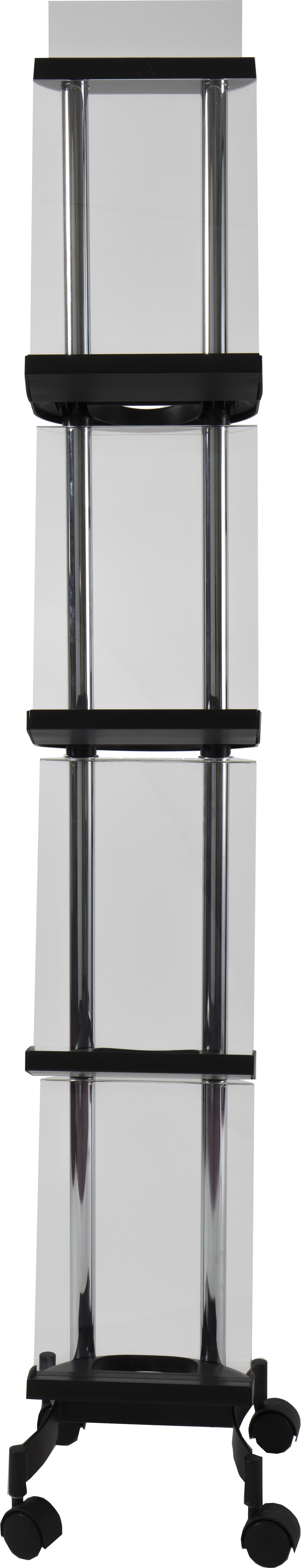 Alba Mobile Magazine Display – Compact Transparent 4-Shelf Brochure Stand with Wheels