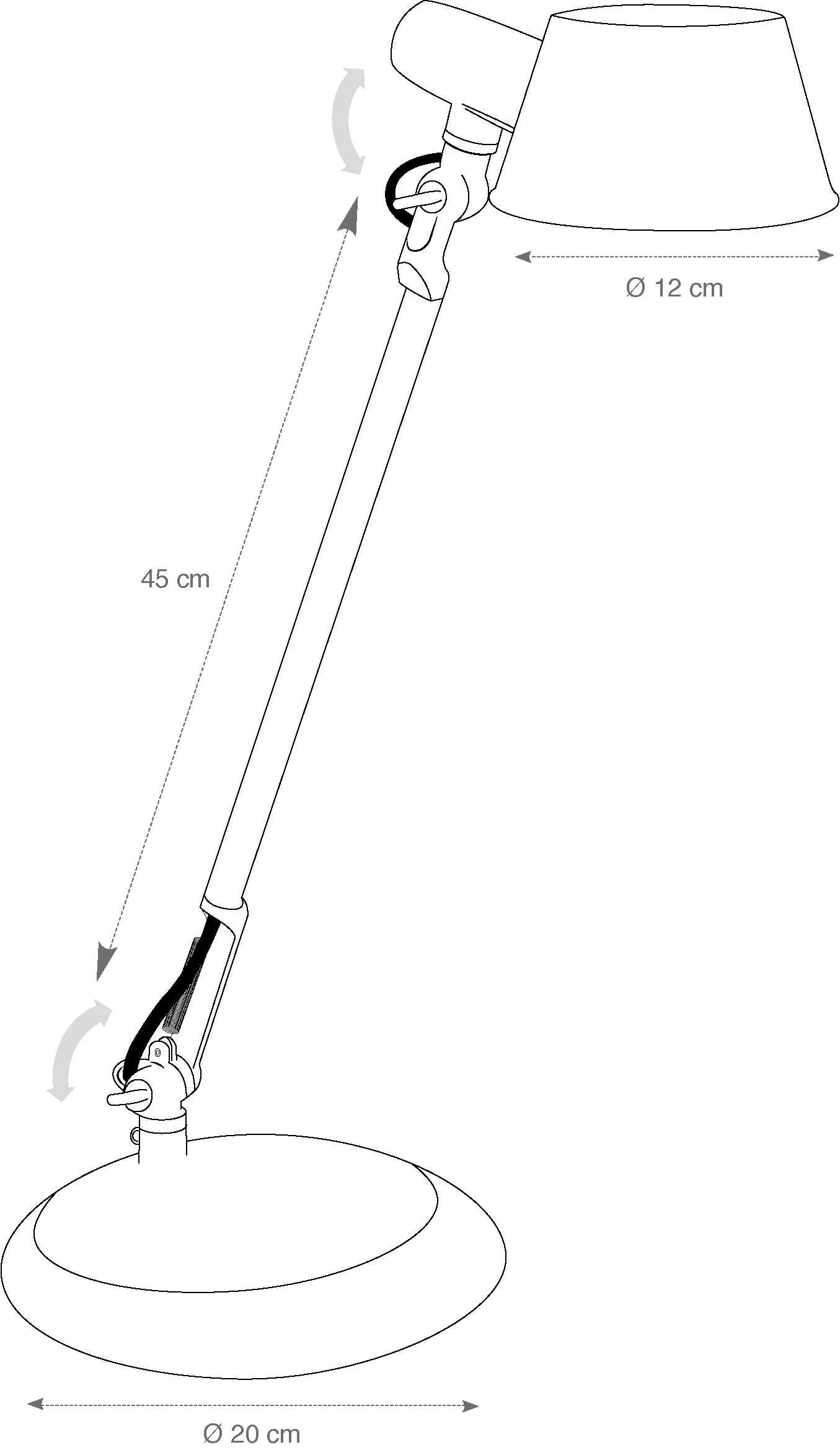 This desk lamp features an articulated arm and adjustable head, allowing precise positioning of light for reading, writing, or computer tasks. Integrated tightening knobs make adjustments simple and secure, while the on/off switch located on the lamp head ensures convenient control. A weighted base provides excellent stability, keeping the lamp firmly in place during use.