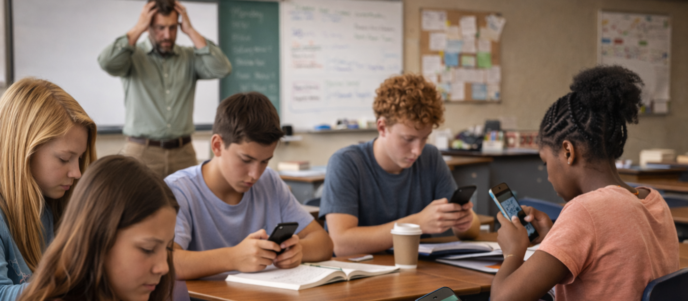 OVER 30 STATES currently have a policy requiring phones to be stored away during class hours as a solution.