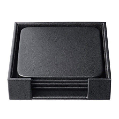 Dacasso Black Leather 4 Square Coaster Set w/ Holder